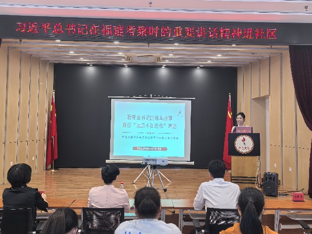 在宣讲活动中,市委党校校委会委员、机关党委书记戴鸿作学习习近平总书记在福建考察时的重要讲话精神宣讲,市委党校学习研修部副主任何舜辉博士和鼓楼区委党校林丹菲老师分别作题为《扭住目标不放松 一张蓝图绘到底——学习习近平总书记在福建考察时的重要讲话精神》《聆听总书记的邻里故事 践行“远亲不如近邻”理念》宣讲。社区干部分享了习近平总书记当年在建华社区的邻里故事,纷纷表示,要当好社区群众的“服务员”,增强为民便民利民服务功能,不断提升基层治理成效,切实帮助居民解决实际困难,为打造宜居和谐幸福社区做出积极贡献。