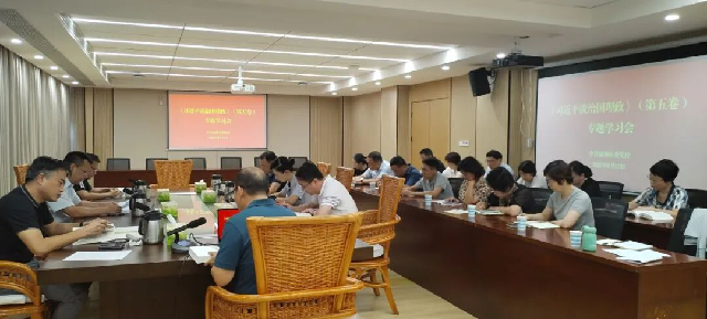 9月12日,市委党校召开校委理论学习中心组专题学习会,集中学习研讨《习近平谈治国理政》第五卷。童桂荣常务副校长主持会议并讲话,校委会领导班子成员、各处室(部)负责人参加会议。