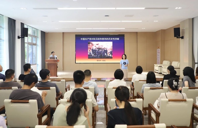 随后的专题讲座环节,曹敏华教授以《中国共产党对抗日战争胜利的历史性贡献》为题,与大家一起回望抗战岁月。曹教授简要梳理日本侵华思想的演变与近代侵华历史,揭示日本对外扩张、侵略中国的历史缘由;系统讲解中国共产党首倡、促成并维护抗日民族统一战线的全过程,从政策调整到第二次国共两党合作实现;聚焦党领导人民坚持十四年艰苦抗战,讲述了东北抗联的斗争,阐释政治、经济、武装、科技等多方面的动员及其成效;深刻总结中国共产党夺取抗战胜利的历史经验,为青年教师和干部理解中国共产党的中流砥柱作用提供学术支撑,让“使命在肩”的信念在青年教师和干部心中愈发坚定。