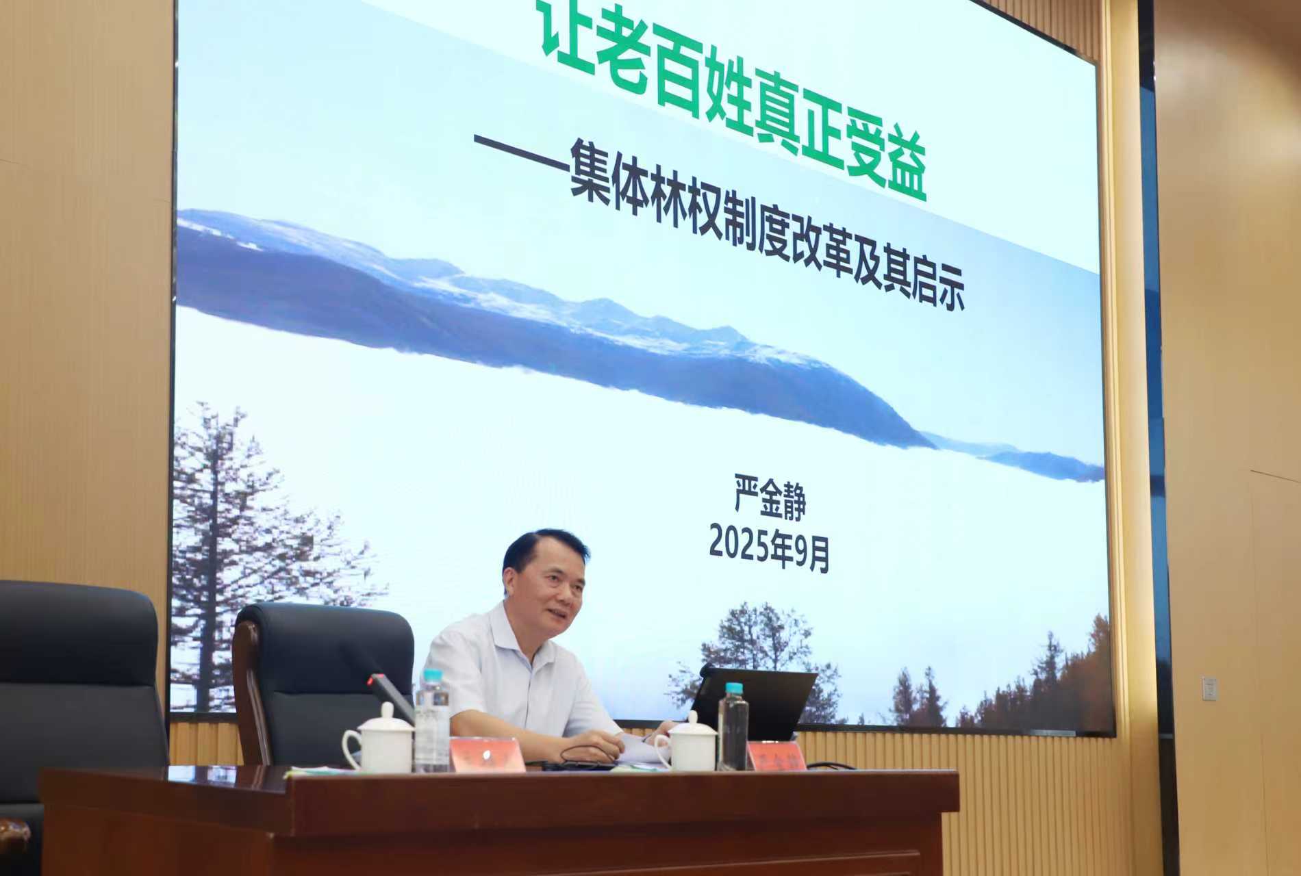 讲座紧扣“集体林权制度改革”这一主题,带领学员分析了集体林权改革所处的历史背景,回顾了推进的整体历程,总结了改革的深刻启示,强调进一步全面深化改革必须坚持党的全面领导,必须始终坚持把维护和发展人民群众利益作为出发点和落脚点,必须坚持依靠人民群众推动改革,必须坚持问题导向、勇于担当、善于作为,必须坚持因地制宜、分类指导、稳步推进,必须坚持推进解放思想、转变观念。